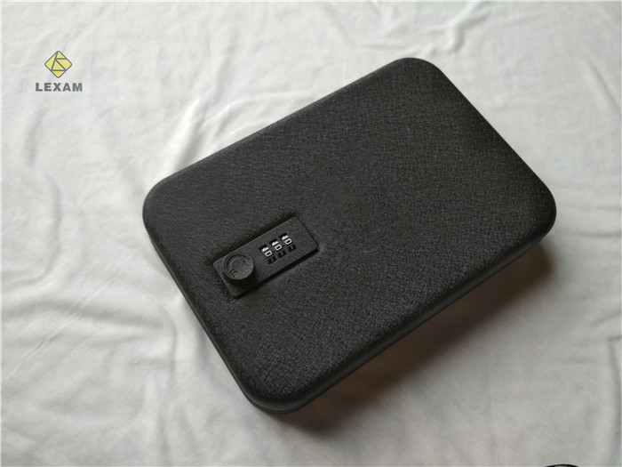 Portable Security Case with Combination Lock is designed to secure a wallet, credit cards, cell phone or handgun for concealed-weapon permit holders during transit. The slim-line designed steel case slips into a briefcase, under a car seat or in your luggage for added security and peace of mind. This case meets TSA airline firearm guidelines and contains a foam interior that protects the contents during transit. It includes a 1,500 pound test steel cable which keeps the case secure when the cable is looped around any fixed object and through the cable slot in the body of the case. Locking the case keeps the cable in place and the cable is included with the case. This unit is secured with a 3-tumbler combination locking system.